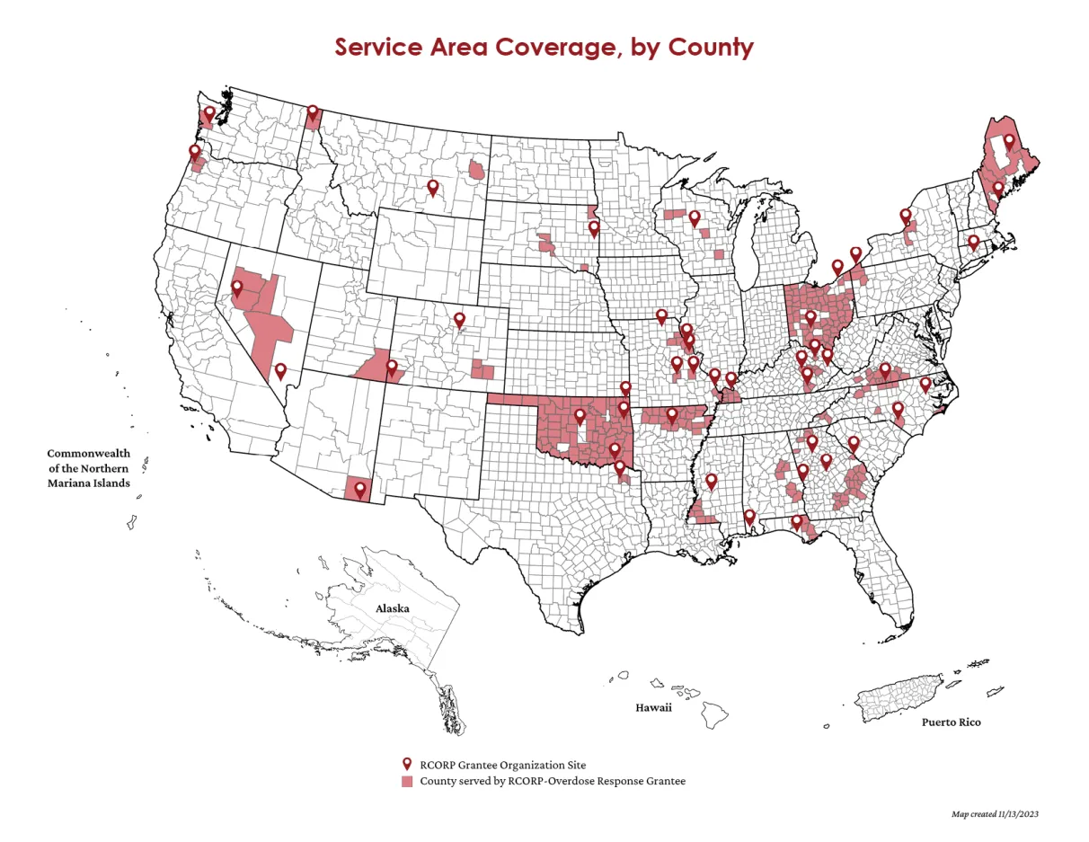 RCORP–Overdose Response strives to support improving health care in rural areas by addressing their immediate and short-term needs related to the provision of substance use disorder services. RCORP-Overdose Response aims to reduce and prevent the risk of overdoses in rural areas. Grantees receive up to $300,000 over a 12-month POP, to implement activities aligned with the following, overarching program goal: